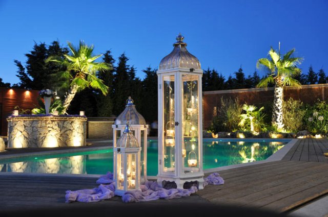 φωτισμός με σενάρια που εναλλάσονται και στην πισίνα του κτήματος