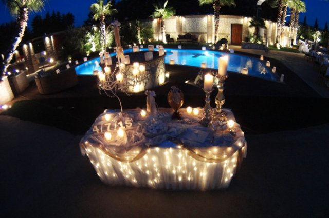 τραπέζι ευχών δίπλα στην πισίνα του κτήματος